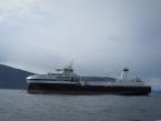 Dark hull, white superstructure, wheelhouse fwd